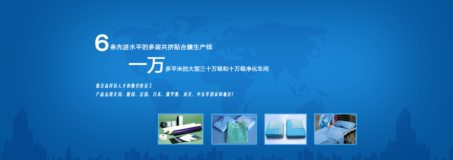 • 成立于1998年,專業從事醫用復合膜及一次性醫用耗材的研制和生產,擁有六條先進水平的多層共擠貼合膜生產線,40000多平米的大型三十萬級和十萬級凈化車間,擁有高科技人才和勤勞的員工,產品質量一直處于領先水平,在國內外享有很高的知名度,產品遠銷美國、德國、法國、日本、俄羅斯、南美、中東等國家和地區。... 更多